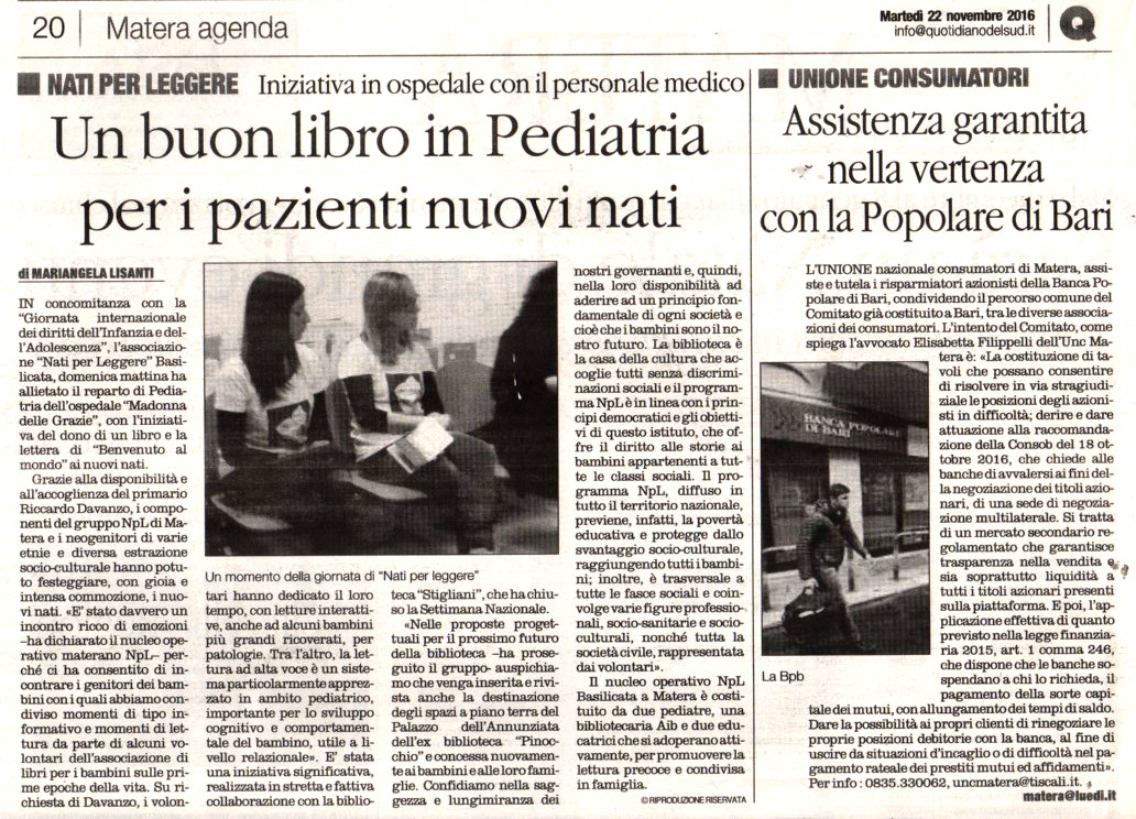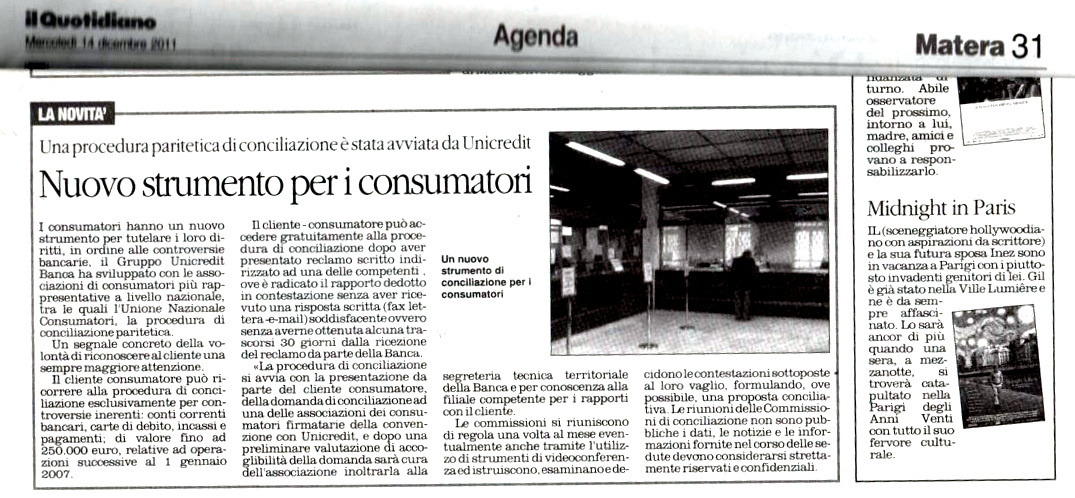 articolo giornale assistenza garantita nella vertenza con popolare di bari